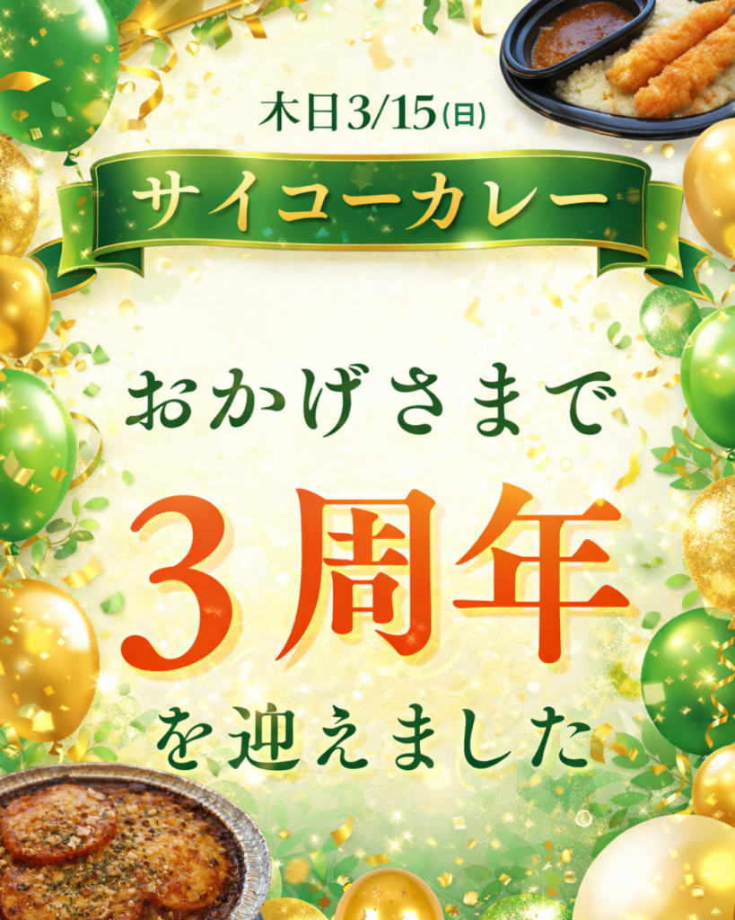 🎉3/15 サイコーカレー3周年🎉
