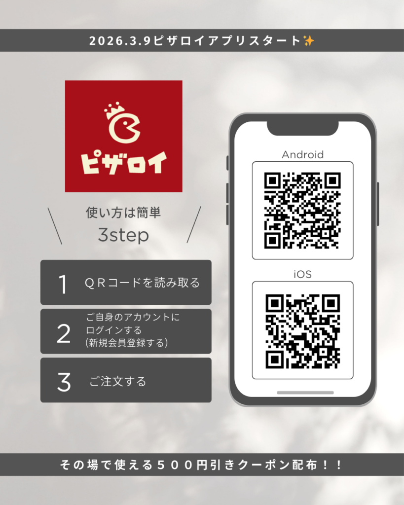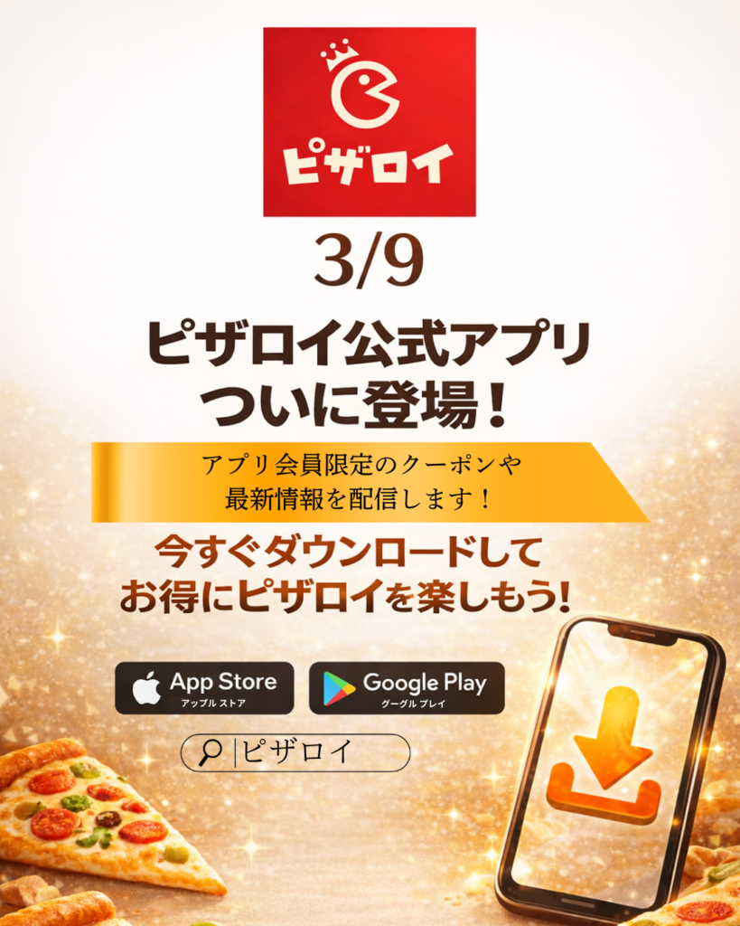本日2026年3月9日(月)より、ピザロイアプリがスタートいたします✨
