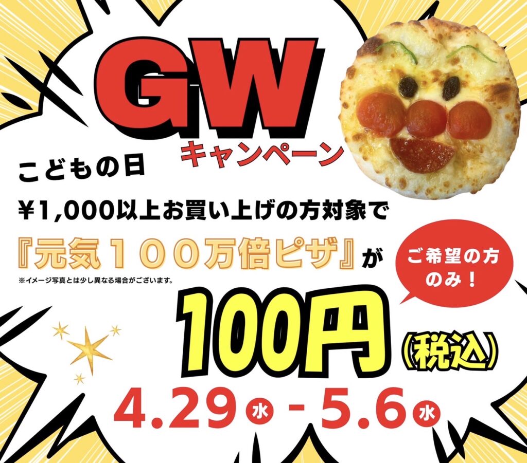 GWのお食事のお供に!そしておトクに楽しめるこのチャンスに是非『元気100万倍ピザ』をお楽しみください✨