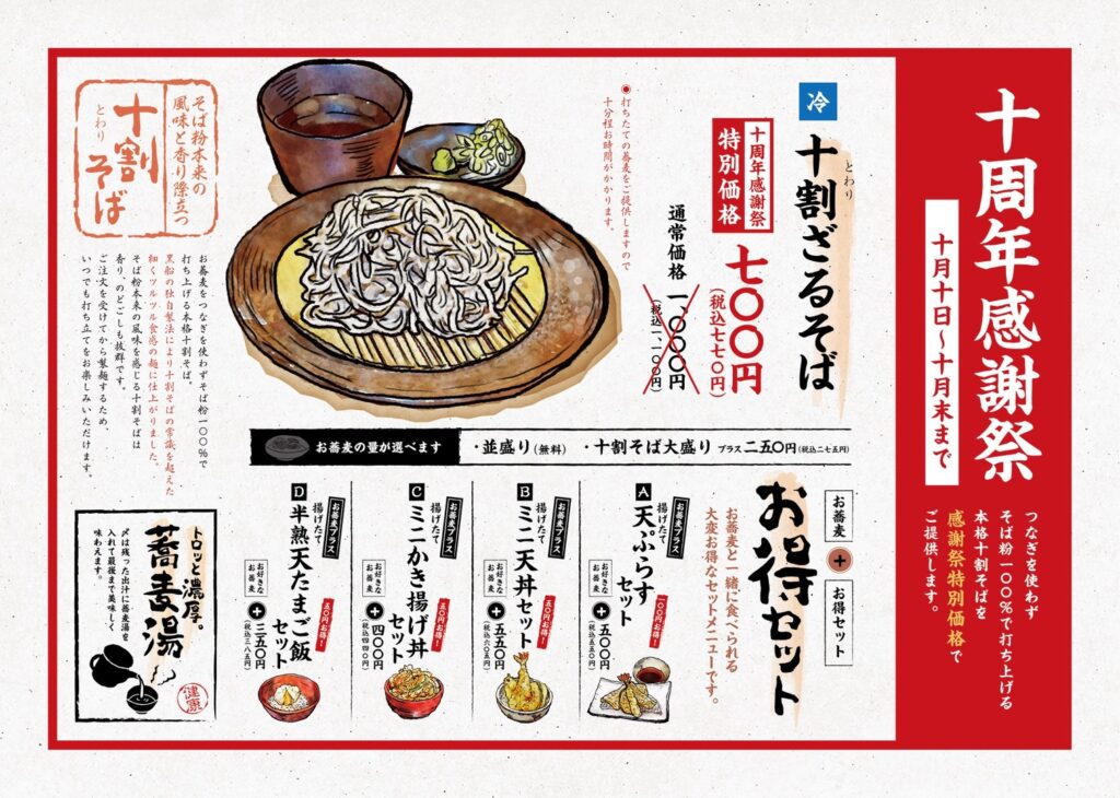 10月10日(金)~10月末までの期間限定で『十割ざるそば』を